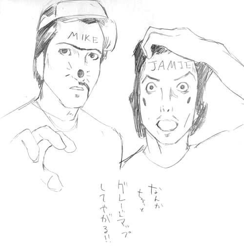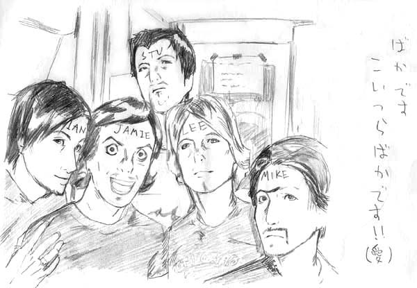 タイトルに忍者だのゴジラだのが入っているので、アニメ好きの兄ちゃんたちだなということは気付いていましたが、どうやら奴ら、結構なオタクらしい。イアンは前の来日時にあずまんがのちよちゃんフィギュアをお買い上げになったとか。あずまんが大王の大ファンらしい。あとはメンバーほぼ全員がガンダムグッズを買って帰ったとか。…かわいいなあお前ら(笑)前の来日時に、ファンから渡された「神風」手拭を受け取っていたので、今回はドラゴンボールの食玩でも投げてやろうかと思ってたんですが、最近テロとか警戒されてるしそれでライブ止まっても困るなと思い、自重しました。でも、そうか!イアンよ!今度来る時にはちよ父ぬいぐるみを用意しておくよ!!そんな彼らなので、東京滞在中に秋葉原で張ってたら会えたような気がしてなりません。ゲーセンなんか行ったら大喜びだったに違いない。